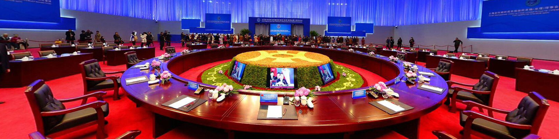 根據(jù)上合精神,專為會場量身定制600余件家具產(chǎn)品,包括11.6米圓形會議桌、8米長型會議桌、會議椅、條桌、會議沙發(fā)、茶幾等。